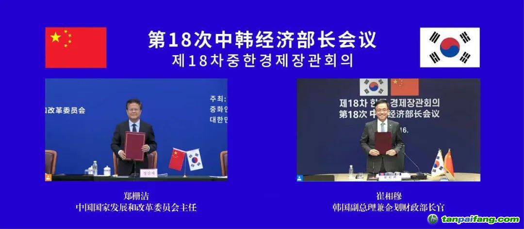 會議以視頻方式召開。中國國家發(fā)展改革委主任鄭柵潔和韓國副總理兼企劃財(cái)政部長官崔相穆共同出席